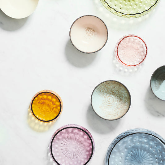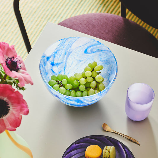 In our collections you will find many colours and expressions. You can collect your favourites, or mix the different collections to create different moods and expressions in your table setting. For example, you can easily mix a blue glass bowl with other shades, such as blue water glasses . Or pink bowls with bowls in completely different colours or from other collections.