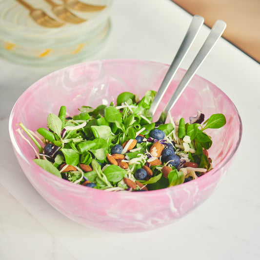 A coloured glass bowl is beautiful in itself and can add a twist to dishes without so much colour. But a colored glass bowl can also make various dishes and salads appear even more appetizing when the dishes themselves contain brightly coloured ingredients that stand out on the table in several ways