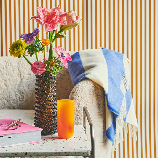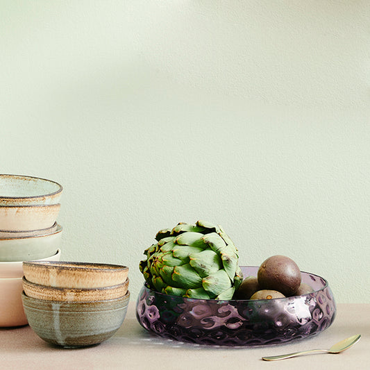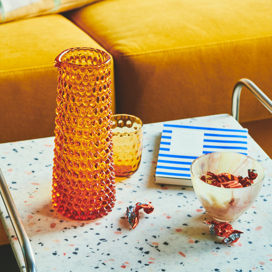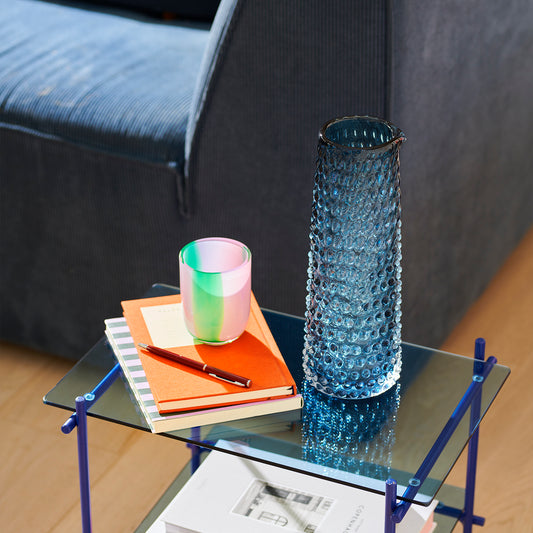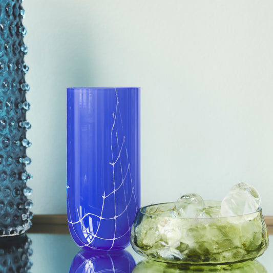 The designer behind the Danish Summer collection, Marie Graff, was inspired by the wet, late Danish summer, where the surface reproduces both large and small raindrops. The Danish Summer collection includes carafes, vases, water glasses, milk jugs, glass bowls and Easter eggs.